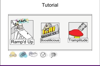 The second level is our first attempt at a "boss level" or a high difficulty level. It covers a much larger space, and you are provided many more resources to build tools with. You're only allowed trampolines and ramps, and you have to find a way to get your car to traverse backwards a bit to reach the high-flying finish flag.